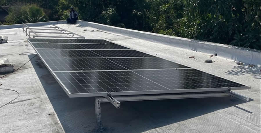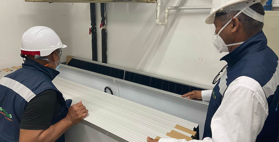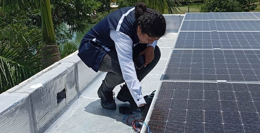 Inspección de cubierta donde se instalarán los paneles solares sobre estructura fija.